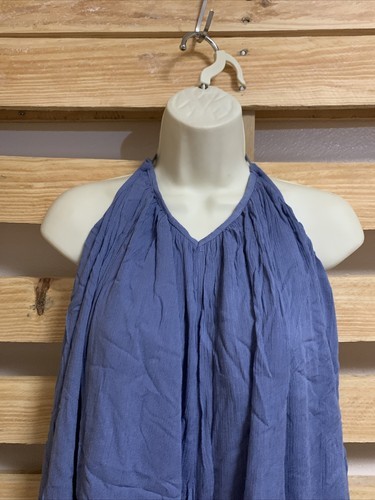 The Sang Flowing Blue Shark Bite Blue Halter Top Woman’s Size L Boho Hippie