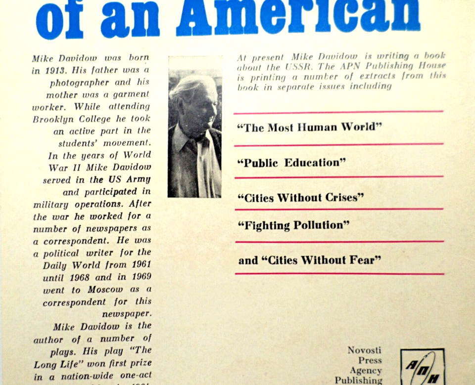 - The Soviet Union Through the Eyes of an American by Mike Davidow Paperback 1974