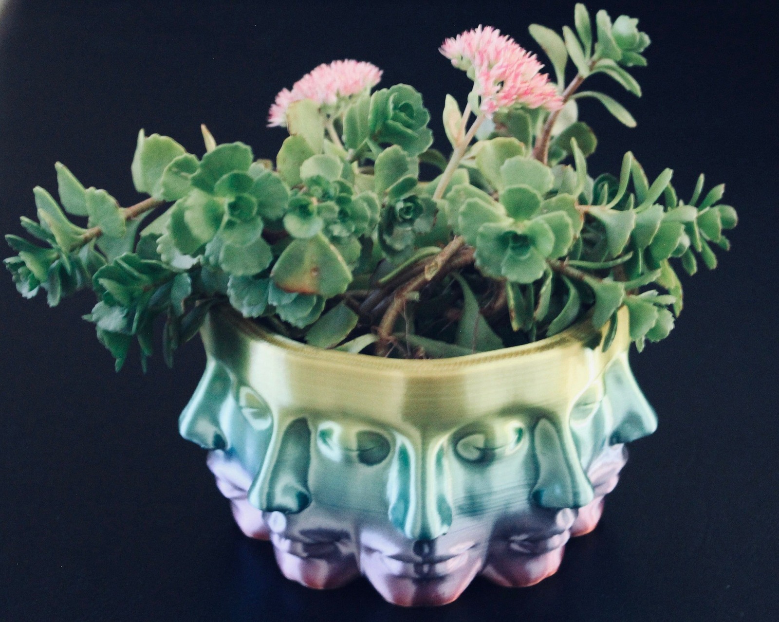 Add charm and personality to your space with our face-shaped succulent planter. An artistic blend of greenery and design. Perfect for a touch of nature in any room! Includes a drain hole. Designed and used with a purchased royalty free license on 9/13/22 from cgtrader