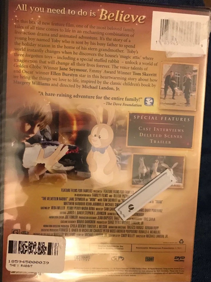- The VELVETEEN RABBIT - Jane Seymour - Tom Skerritt & Ellen Burstyn - DVD NEW