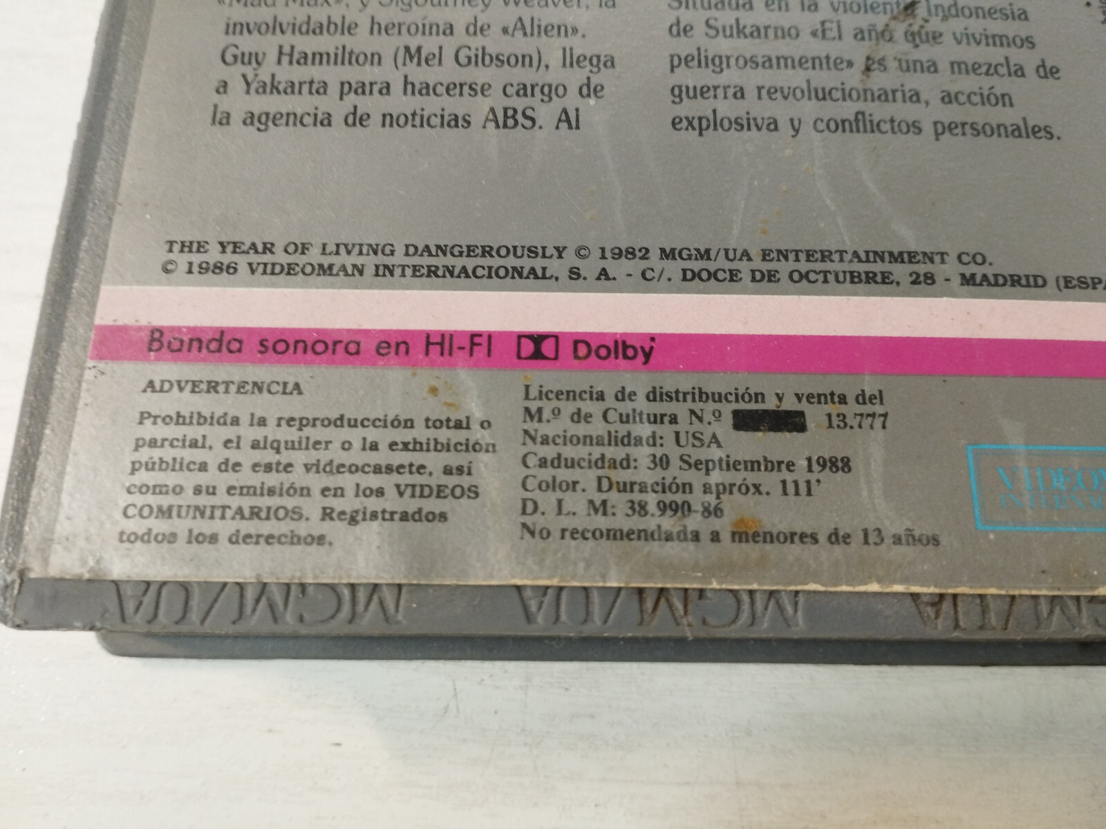 - The Year We Lived Dangerously Mel Gibson Video Beta Videocassette Betamax