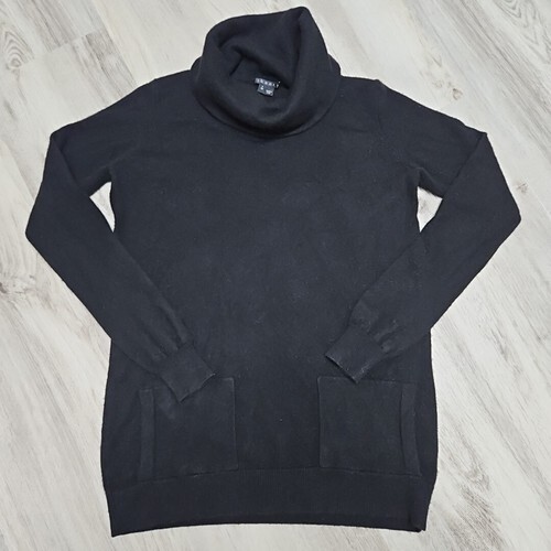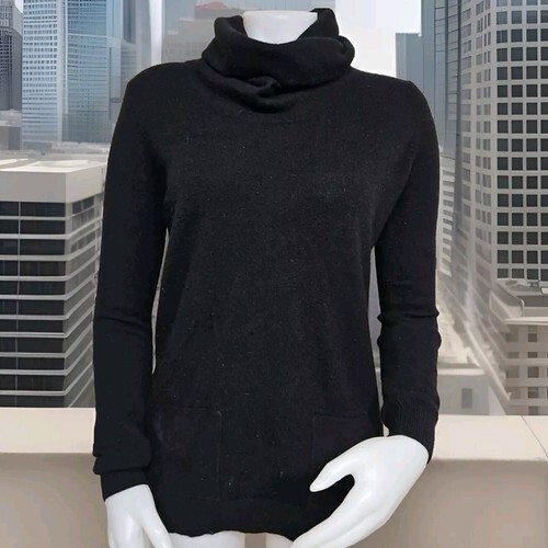 - Theory Andrian Royal Cashmere Sweater Womens Petite Black Turtleneck Pockets