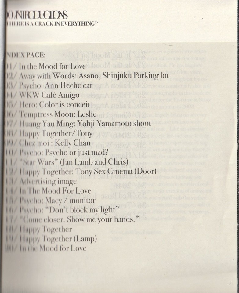 37 On-set photographs taken by master cinematographer Doyle, best known for his work with Wong Kar Wai From: In The Mood For Love Chungking Express Hero Fallen Angels Happy Together Vince Arm Red Rose White Rose Temptress Monn Away with words