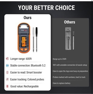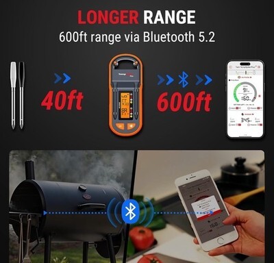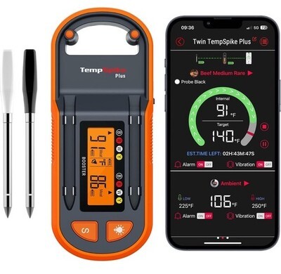 - ThermoPro TempSpike Plus 600ft Wireless Meat Thermometer with 2 Color-Coded