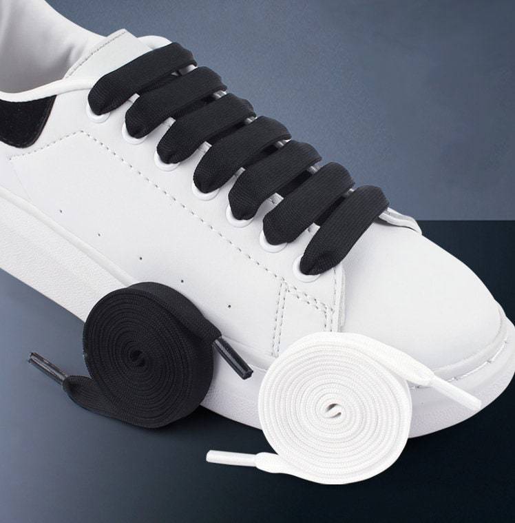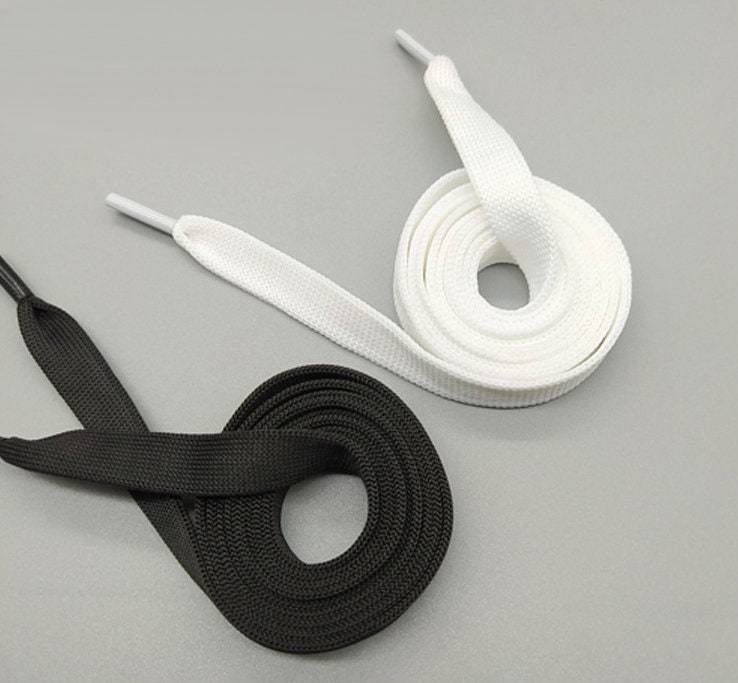 - Thick Flat 12mm Wide Shoelaces Solid Color Strings Black White