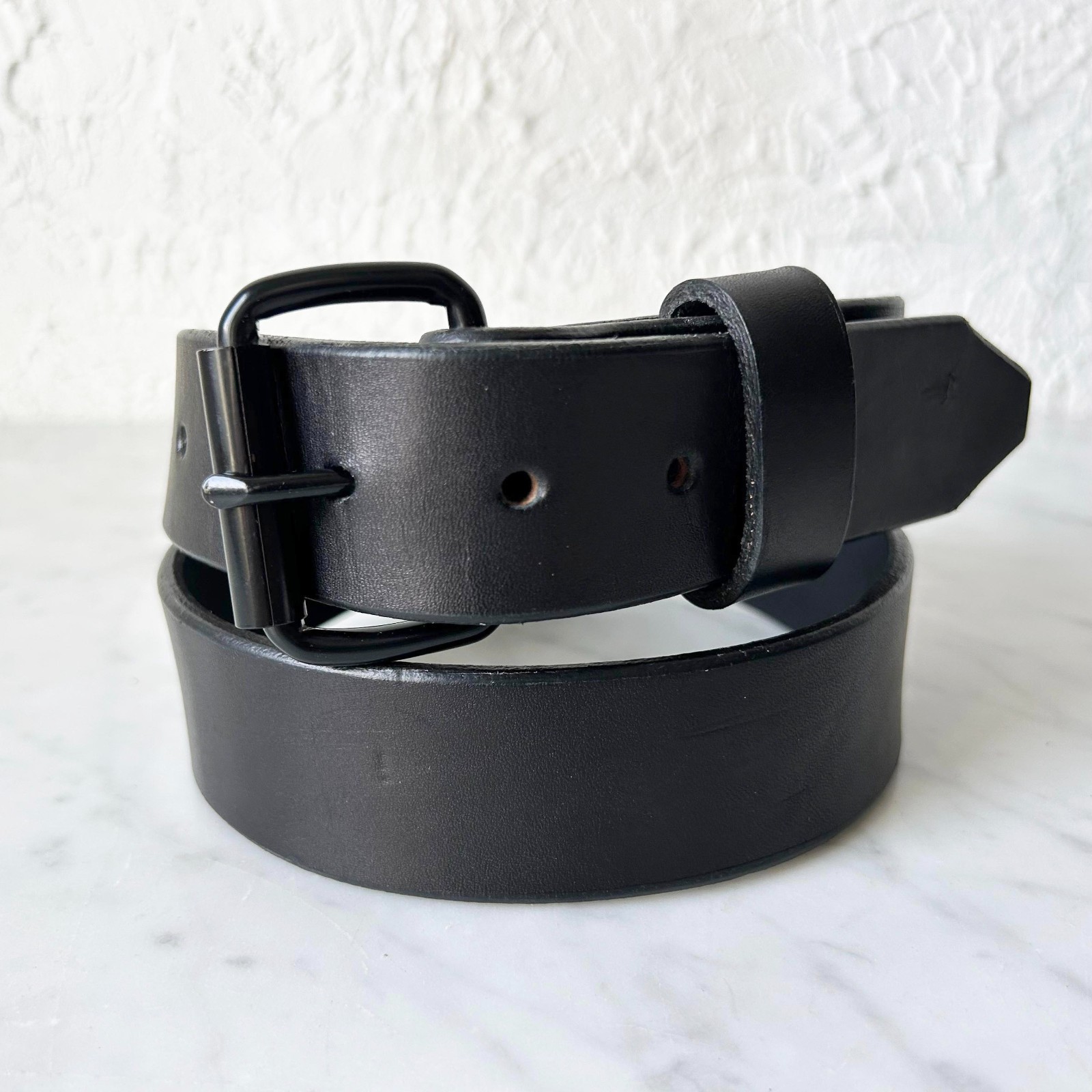 - Thirteen50 Black Leather Belt 1.5" Width Black Buckle - Men's Size 34