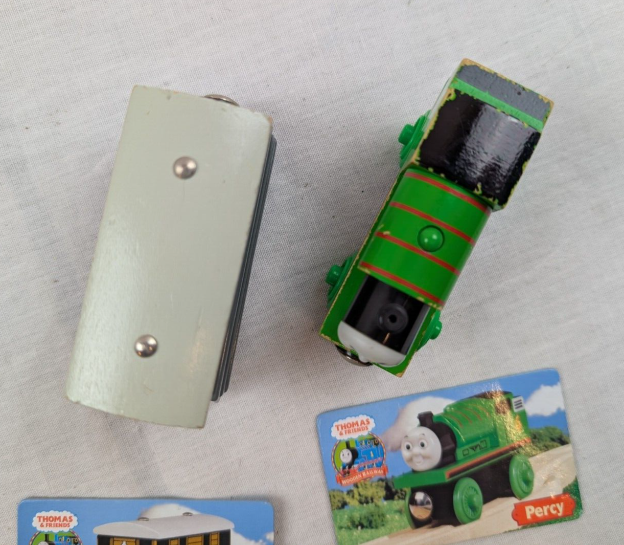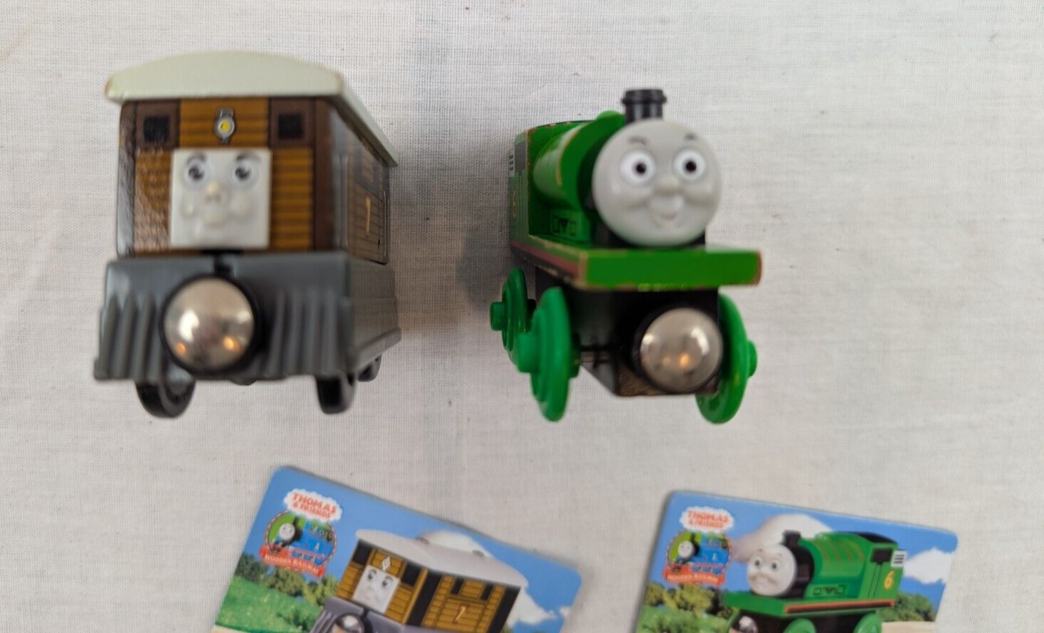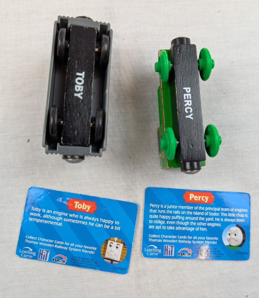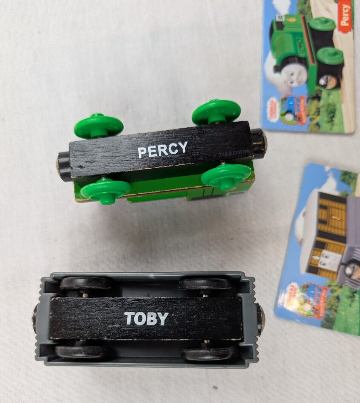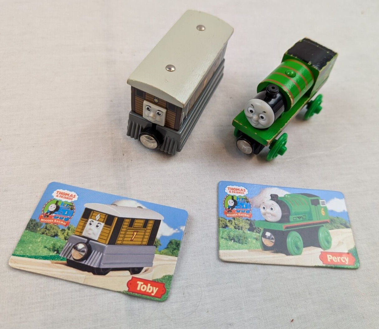 - Thomas the Train TOBY Tram Car Wooden Railway Tank Engine + PERCY 2003 w/ cards