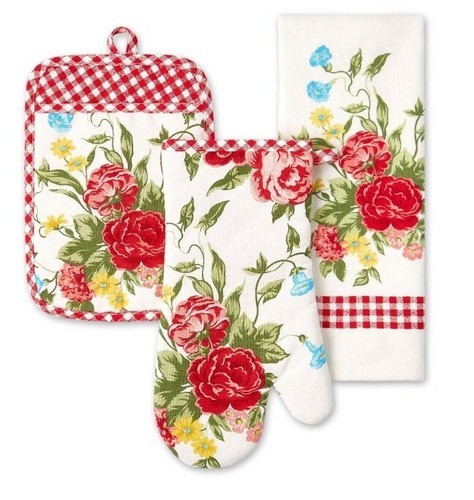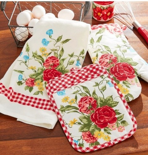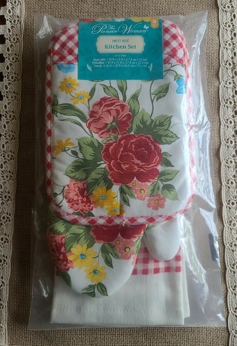 - Three (3) Pioneer Woman ~ "Sweet Rose" ~ Kitchen Set ~ Oven Mitt~Potholder~Towel
