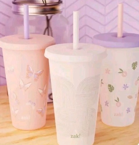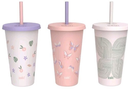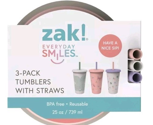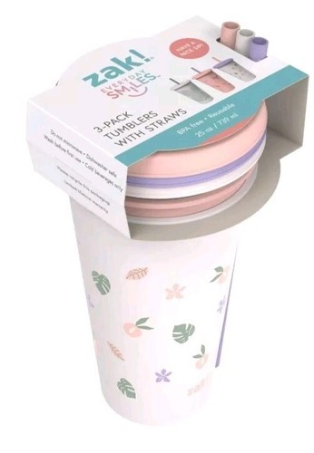 - Three (3) Zak ~ 25 fl oz ~ BPA Free Plastic ~ Printed Tumbler Set with Straws