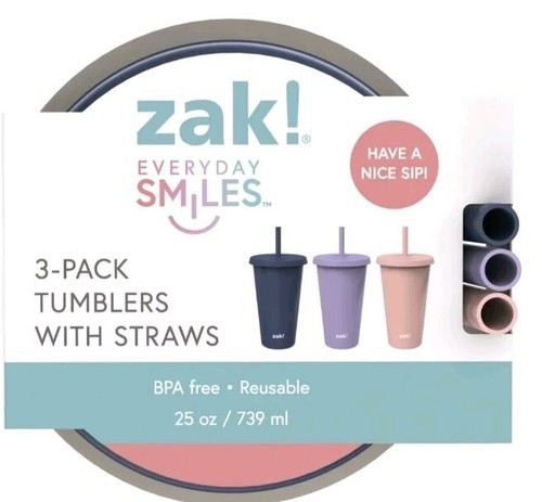 - Three (3) Zak ~ 25 fl oz ~ BPA Free Plastic ~ Solid Color Tumbler Set w/Straws