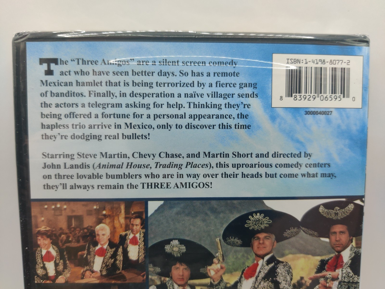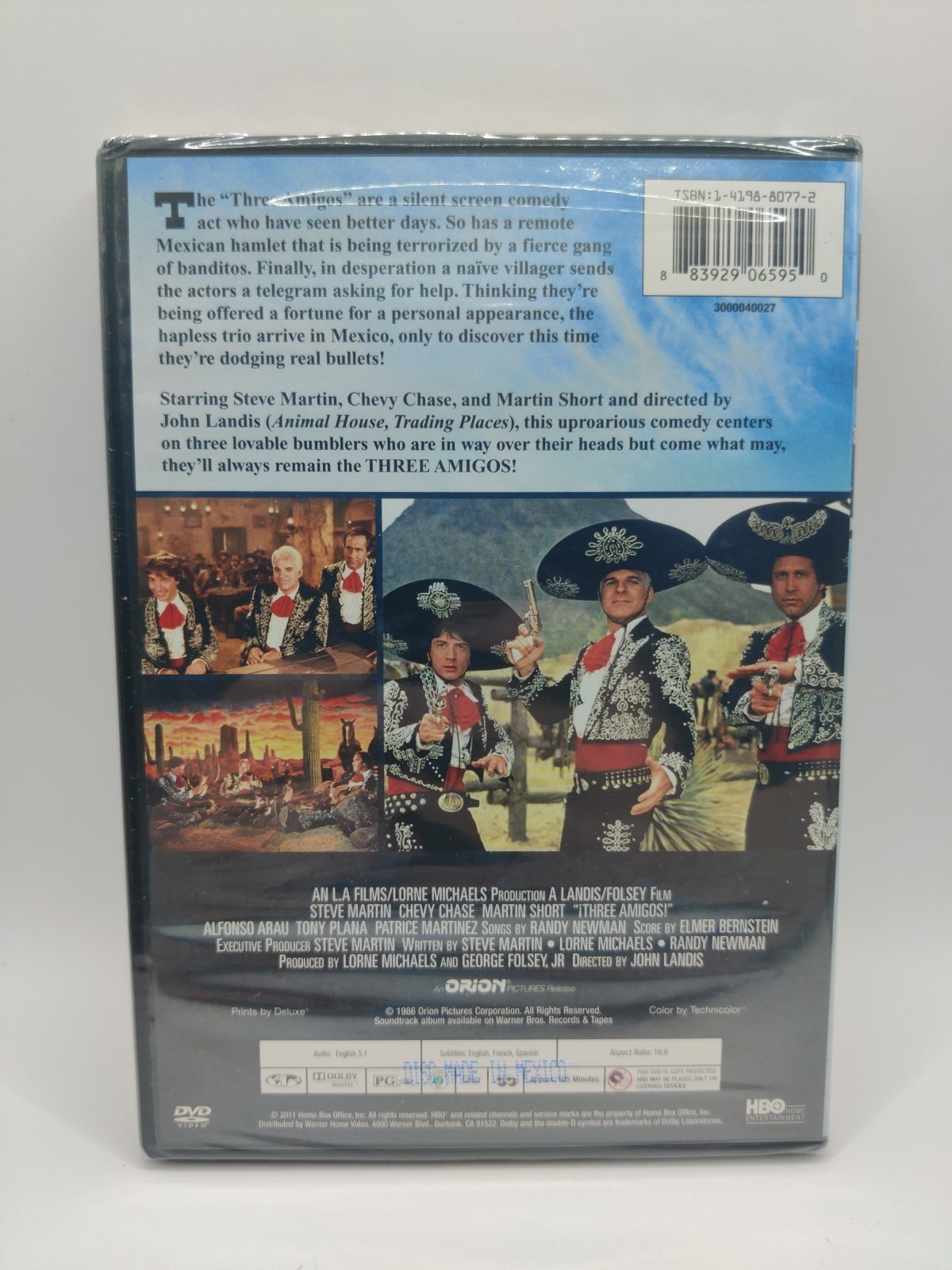 The Three Amigos DVD from 1986 features a classic comedy film directed by George Folsey Jr., John Landis, and John M. Stephens. Starring Steve Martin, Chevy Chase, and John Lithgow, this PG-rated movie follows the hilarious adventures of the Three Amigos as they try to revive a dying small town with their unique talents.