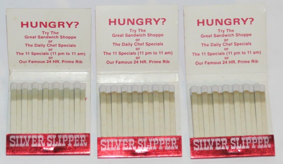 - Three Vintage Silver Slipper Saloon Las Vegas NV Matchbooks, White Matches