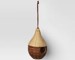 Offer feathered friends a cozy home in your yard with this Outdoor Woven Bird House from Threshold?. This pear-shaped bird house features a woven construction in two shades of brown for a charming decorative look . Designed to hang outdoors, the bird house comes with a top rope loop for easy installation, and has a 2-inch round opening in front to allow the birds easy access. Threshold?: Looks like home, feels like you.
