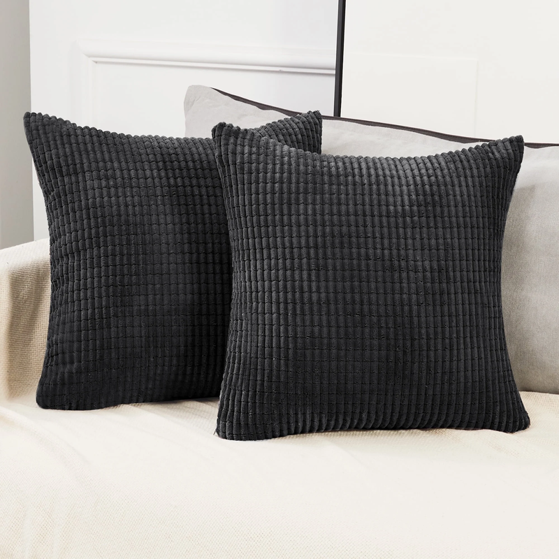 Throw Pillow Covers with Corn Texture, Set of 2 Striped Corduroy Cushion Covers for Bedroom Living Room, 16X16 Inch, Dark Gray, Set of 2