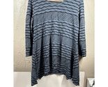 Tianello Grey Texture Striped 3/4 Sleeve Sharkbite Hem Asbury Blouse Tunic Sz XL