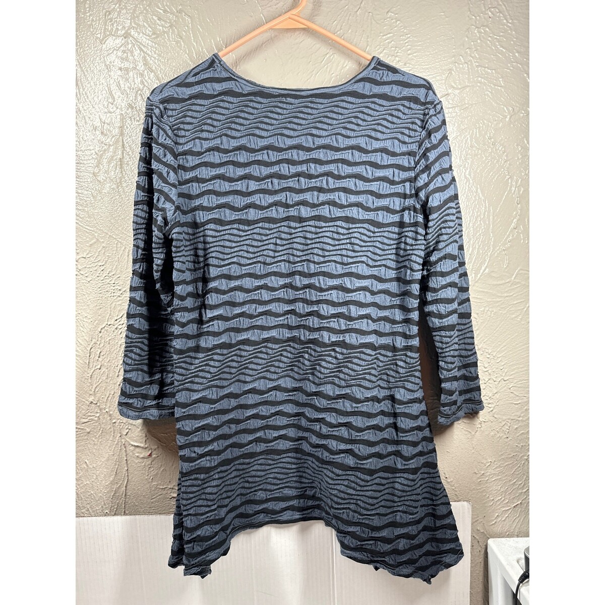 Tianello Grey Texture Striped 3/4 Sleeve Sharkbite Hem Asbury Blouse Tunic Sz XLThis item has been cleaned pers used clothing policy.