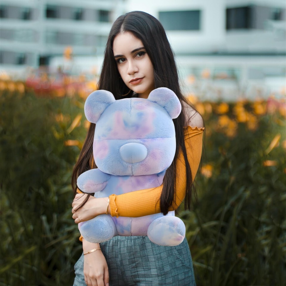 VACUUM-SEALED AND EASY TO CLEAN: Your Tie Dye Bear is vacuum-sealed, ensuring a fresh and joyful unpacking experience for you. After unpacking, allow 1-2 days for your plush companion to regain its full shape. Keeping your bear's vibrant allure is a breeze with machine washing, and for a quicker recovery, bask it in the sun's embracea natural way to bring back its soft and cuddly texture.