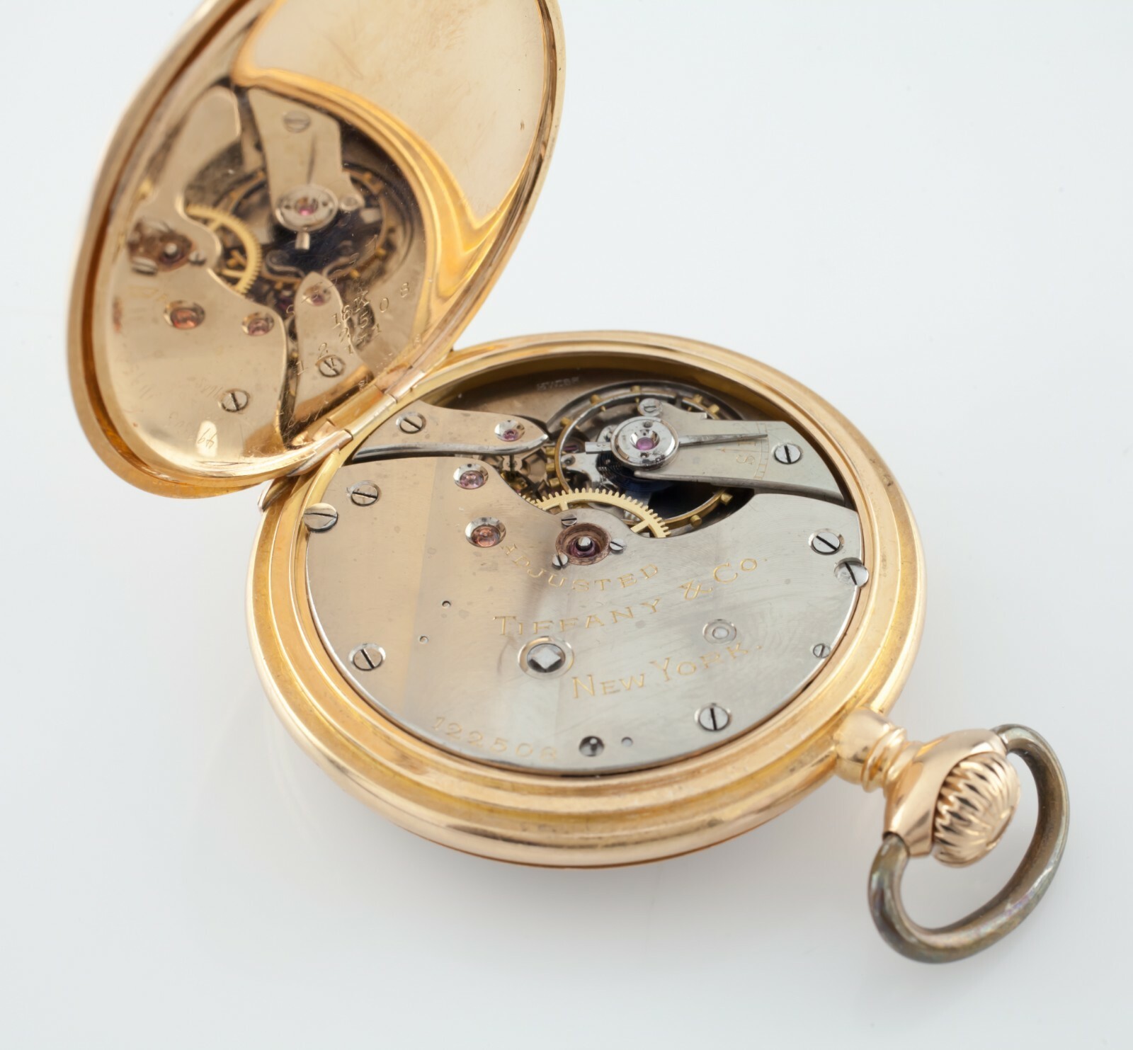 - Tiffany & Co. 18k Yellow Gold Pocket Open Face Pocket Watch Size 8