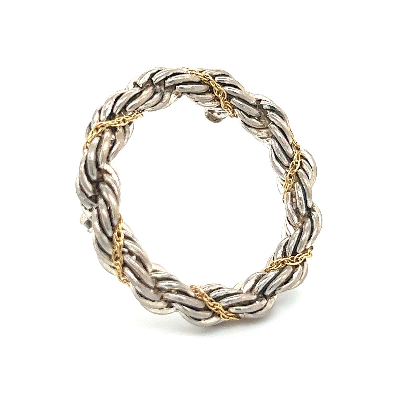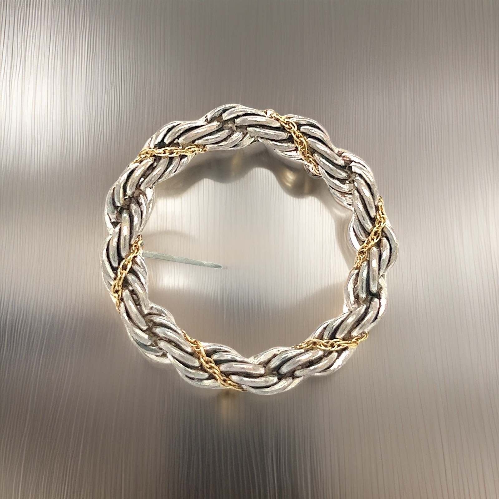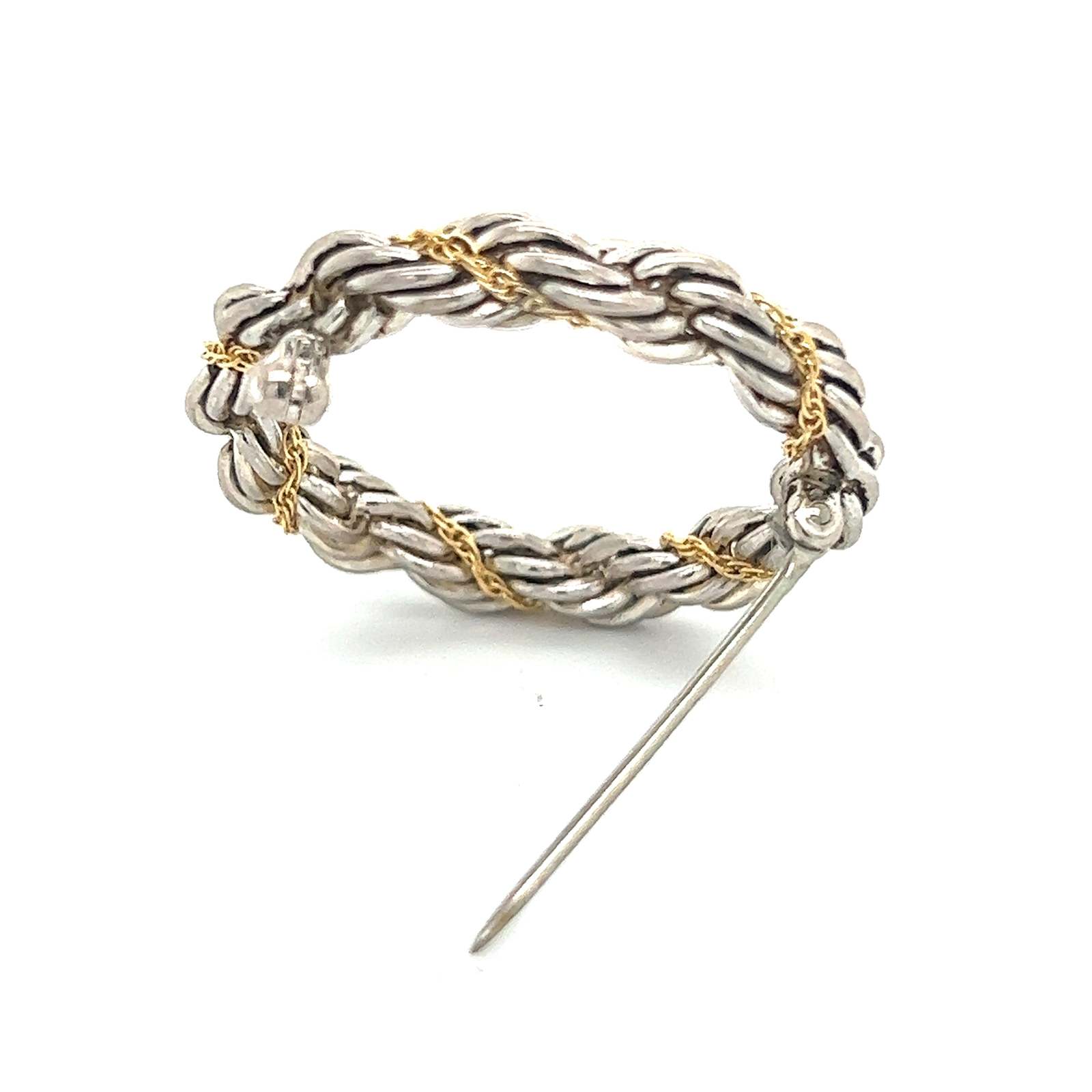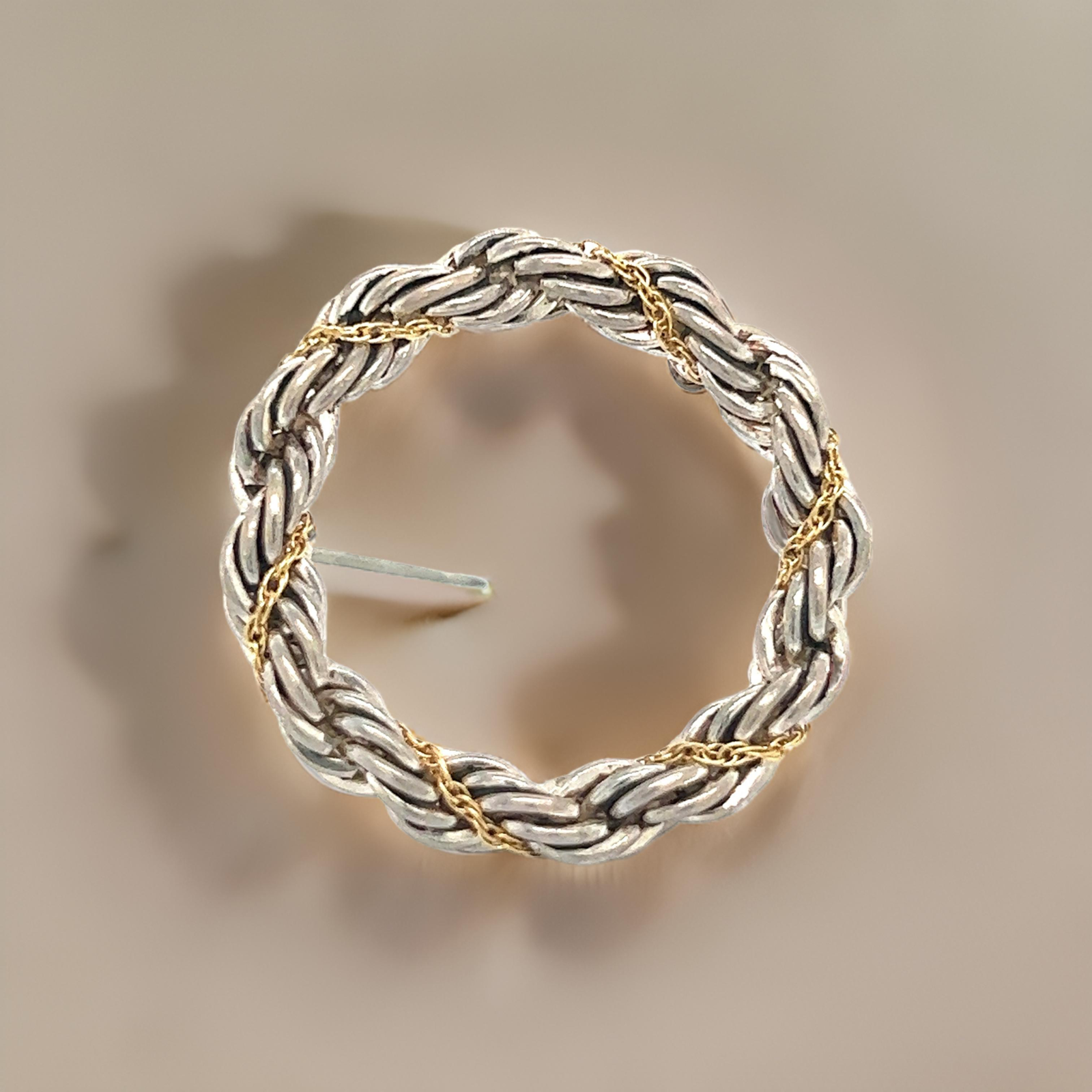 Tiffany Co Estate Circle Wreath Brooch Pin 18k G + Sterling Silver TIF533