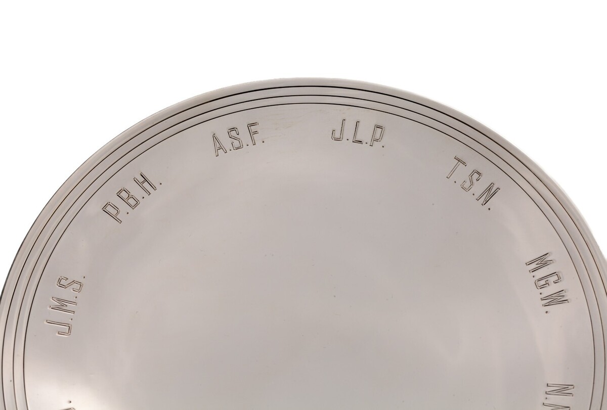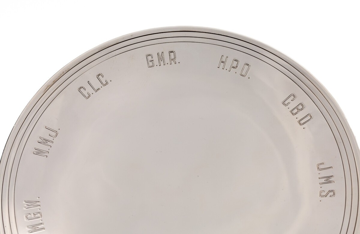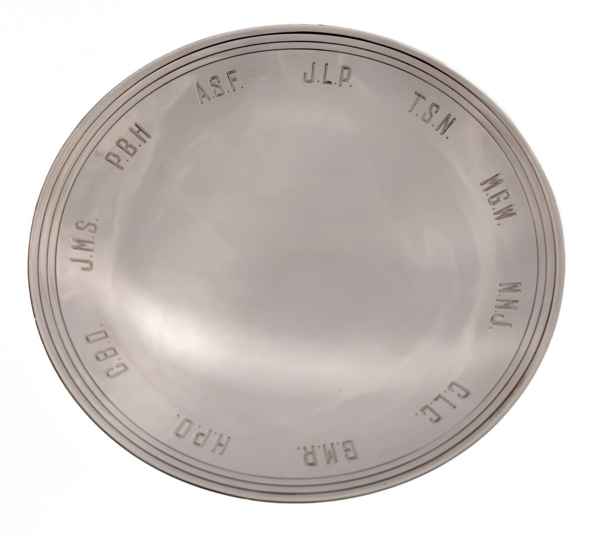 Piece is in Good Condition. No dings, fleabites, or scratches. A Ring of Initial Monograms around circumference of plate. See photos for details.