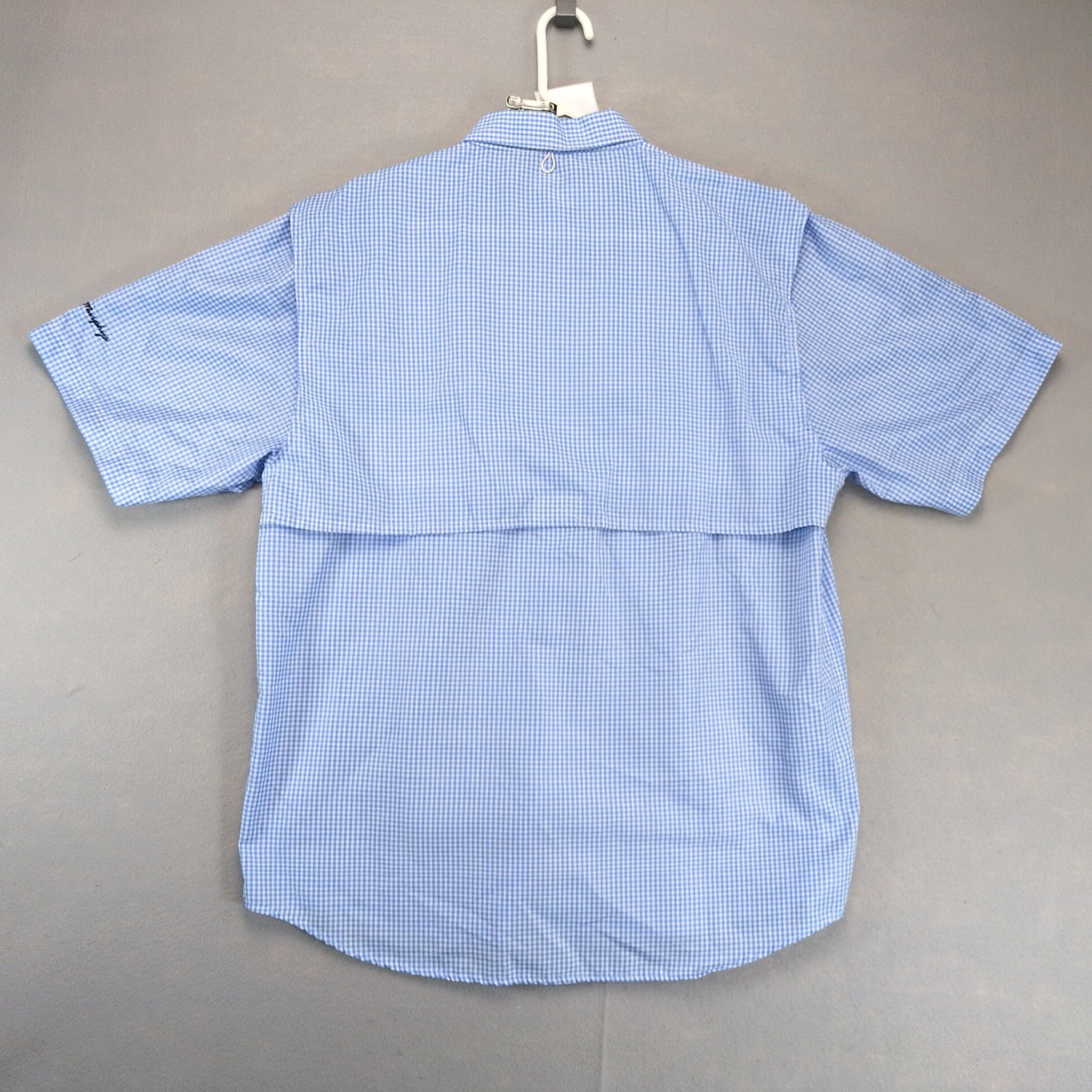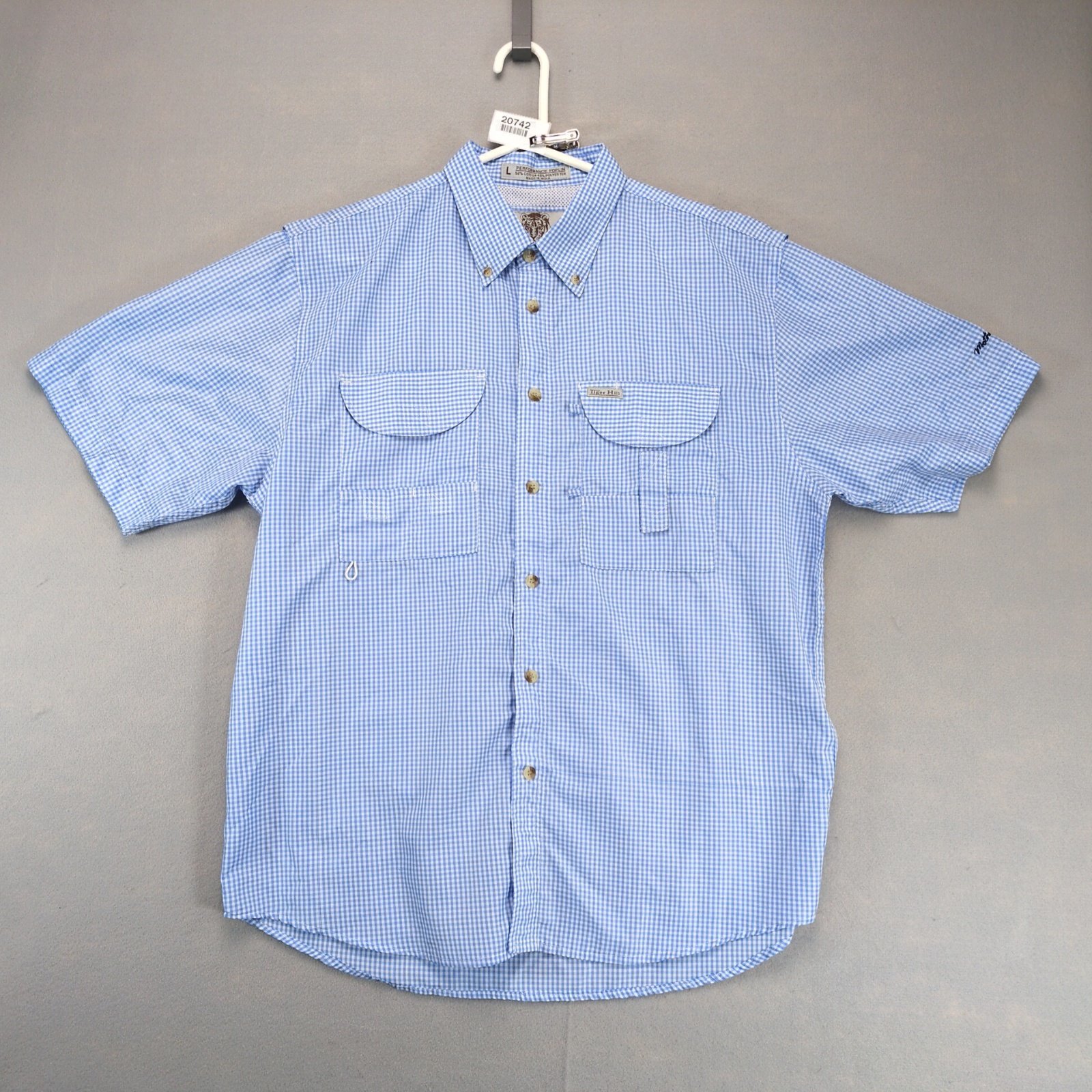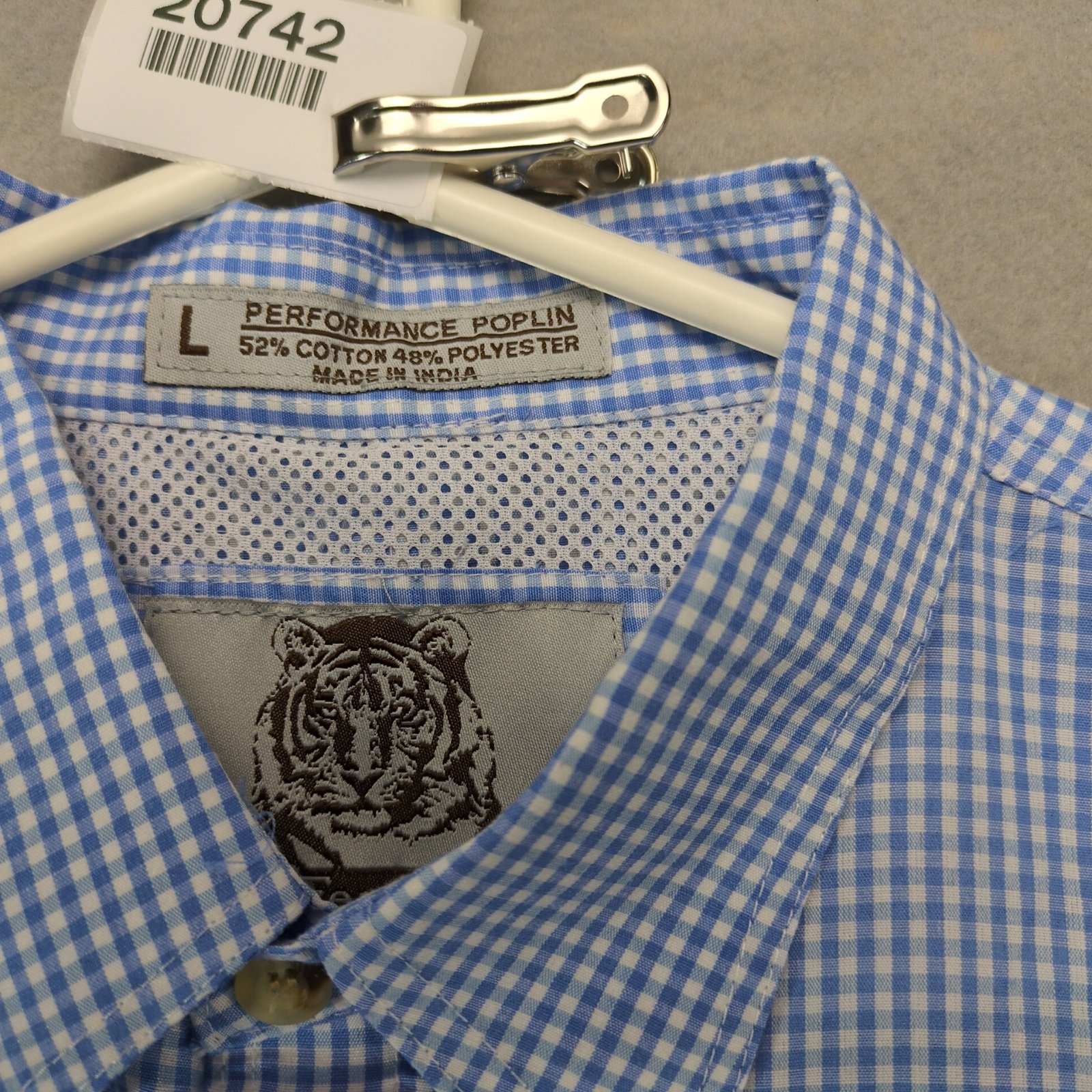 - Tiger Hill Blue Gingham Button Down Fishing Shirt Men's L Vented Short Sleeve