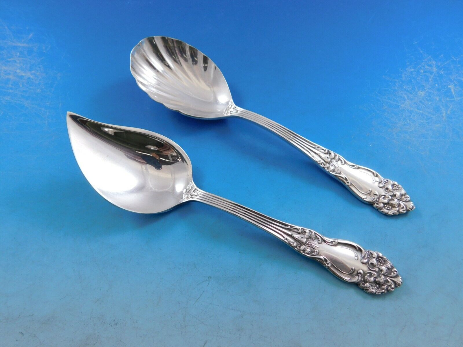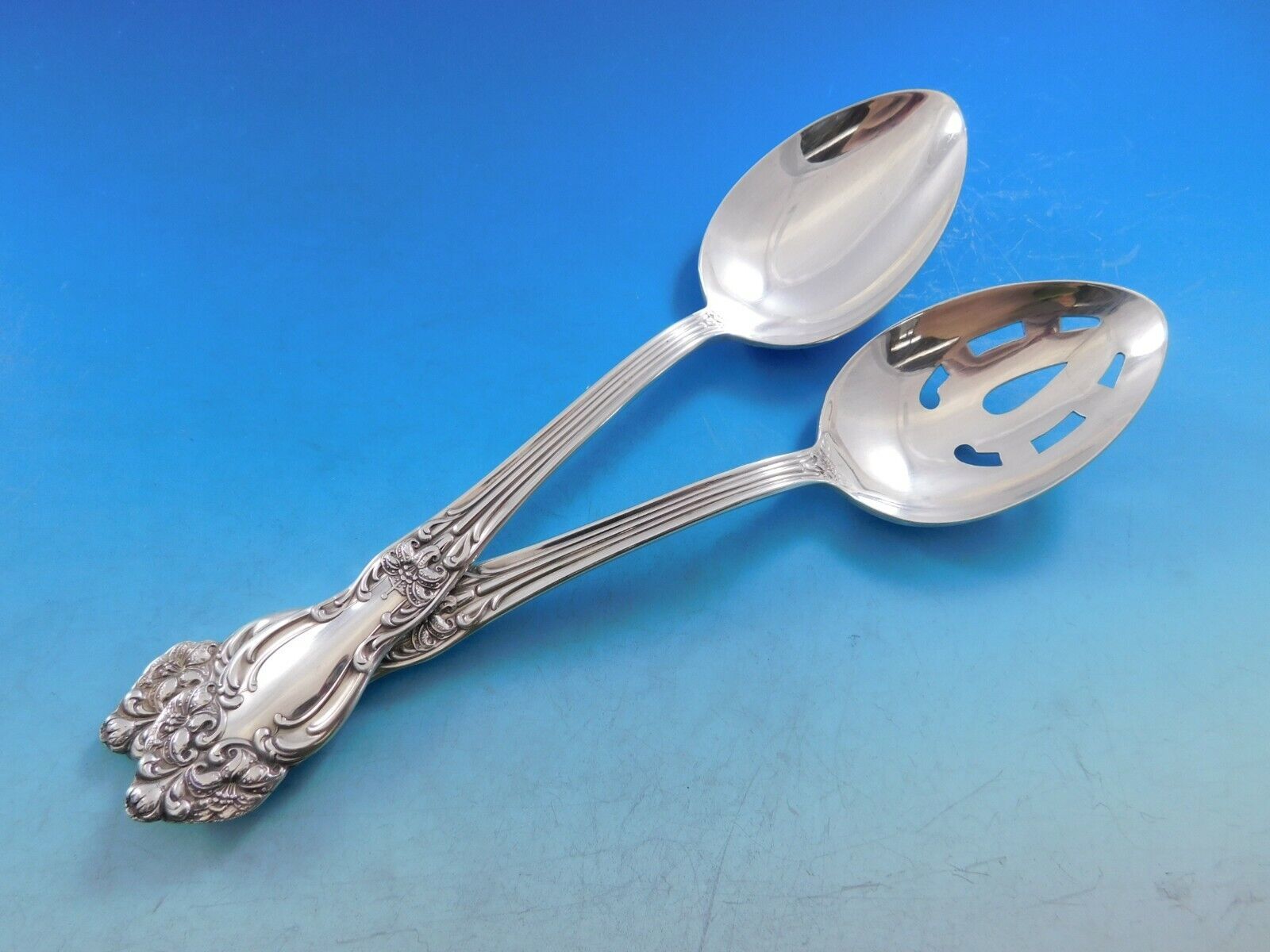 Very good clean condition with light surface scratches, no monograms. This set will be lightly polished prior to shipping. Stunning!