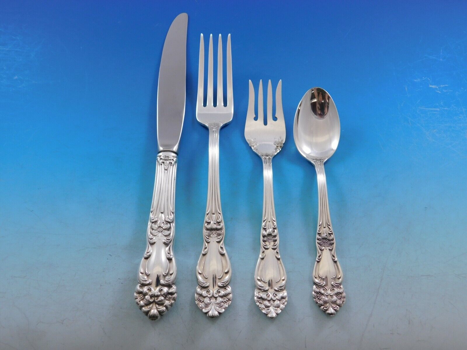 COMPLETE FLATWARE SETHOSTESS HELPERSHOLLOWWARE / TEA SETSMUSEUM QUALITY/FIGURAL SILVERFINE ESTATE VINTAGE JEWELRYMID-CENTURY MODERNSILVER FLATWARE SILVERWAREBuccellatiChristofleGeorg JensenNew Georg Jensen HollowwareNew Georg Jensen JewelryGorhamInternationalLuntMichael Aram - NewReed BartonTiffany Co.TowleWallaceWhitingPLACE SETTINGS