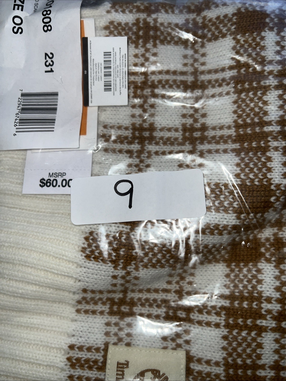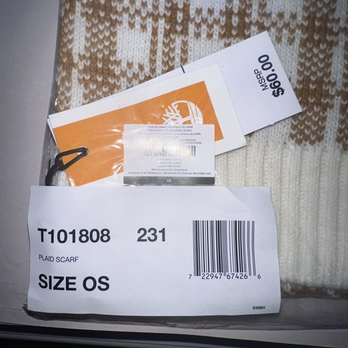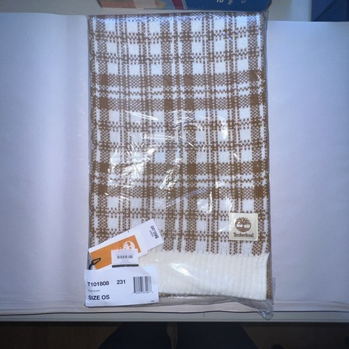 - Timberland Buffalo Plaid Scarf, 10"x68" Wheat Tan White Unisex New Comfy Preppy