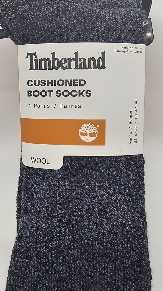 - Timberland Mens Crew Socks Size 9-12 Grey Wool Cushioned 4 Pair