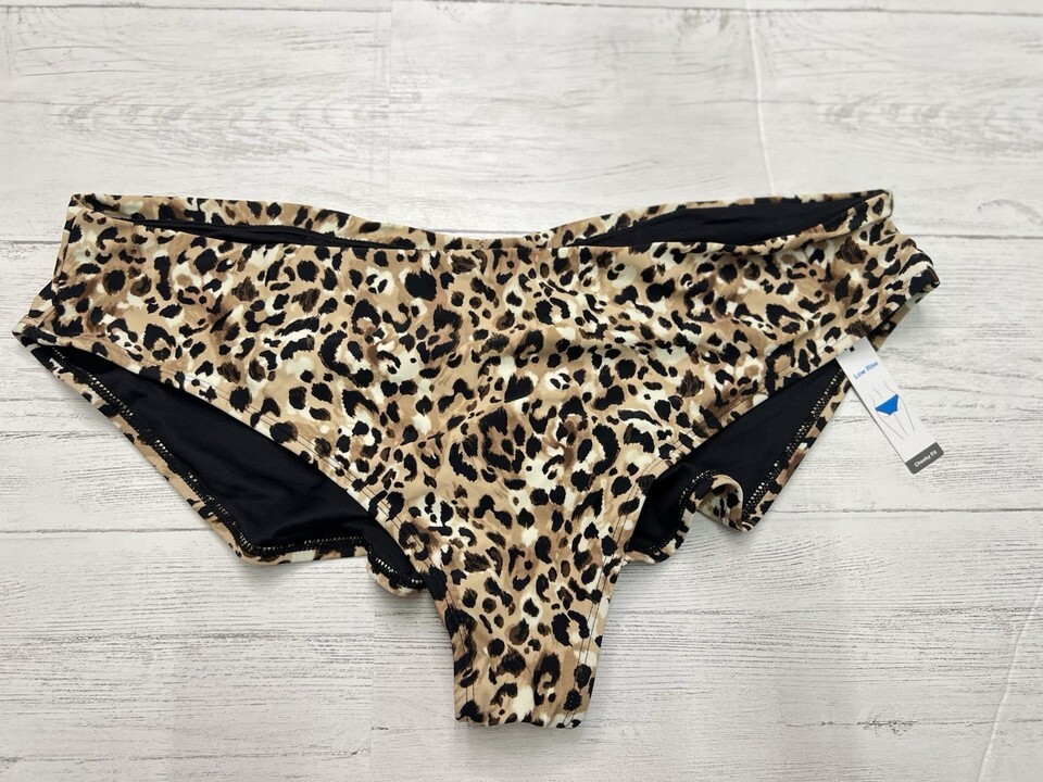 - Time And Tru Womens Leopard Print Bikini Bottoms Plus 2X Low Rise Ruched Back