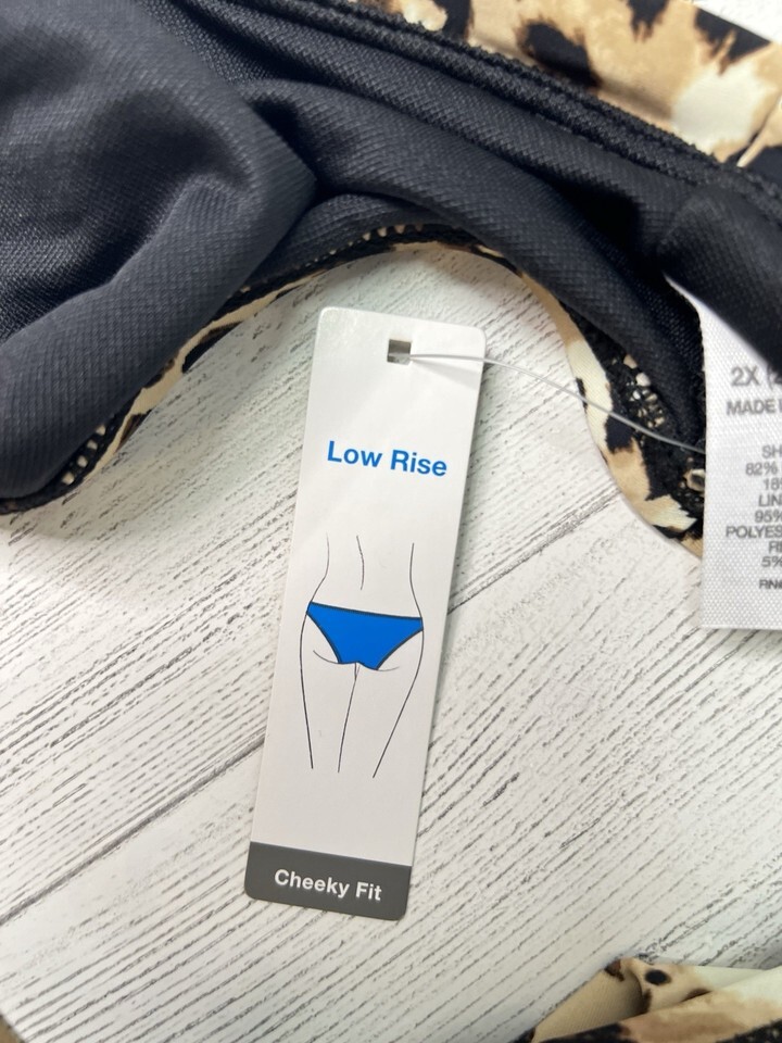 Time And Tru Womens Leopard Print Bikini Bottoms Plus 2X Low Rise Ruched Back