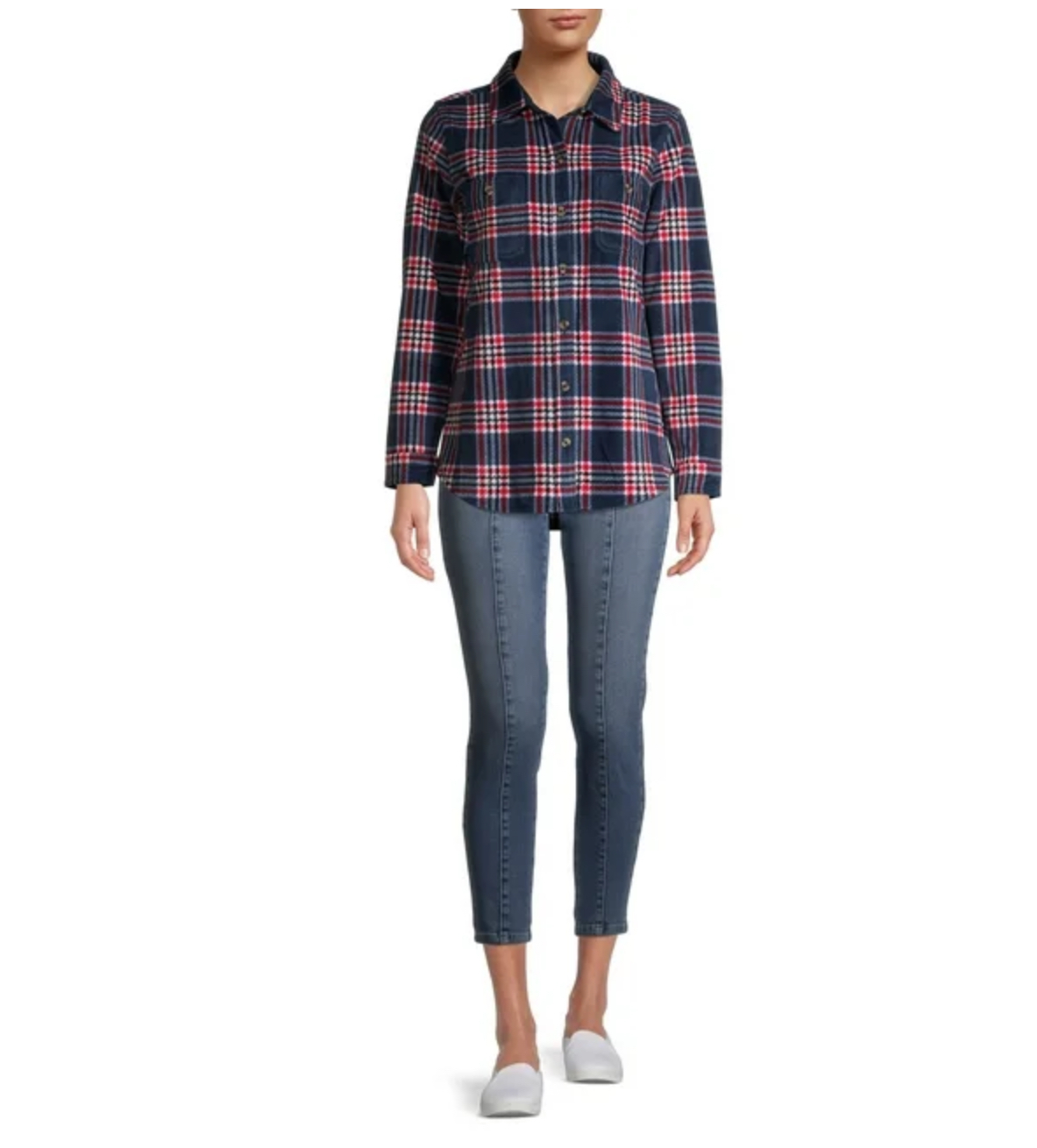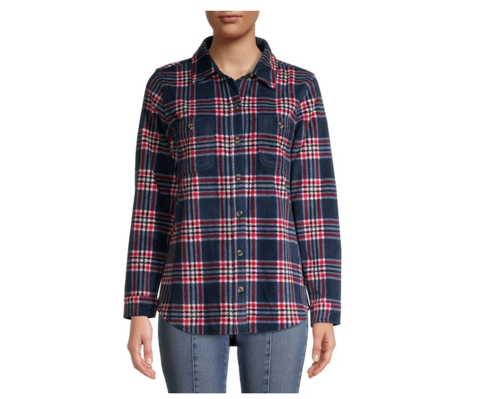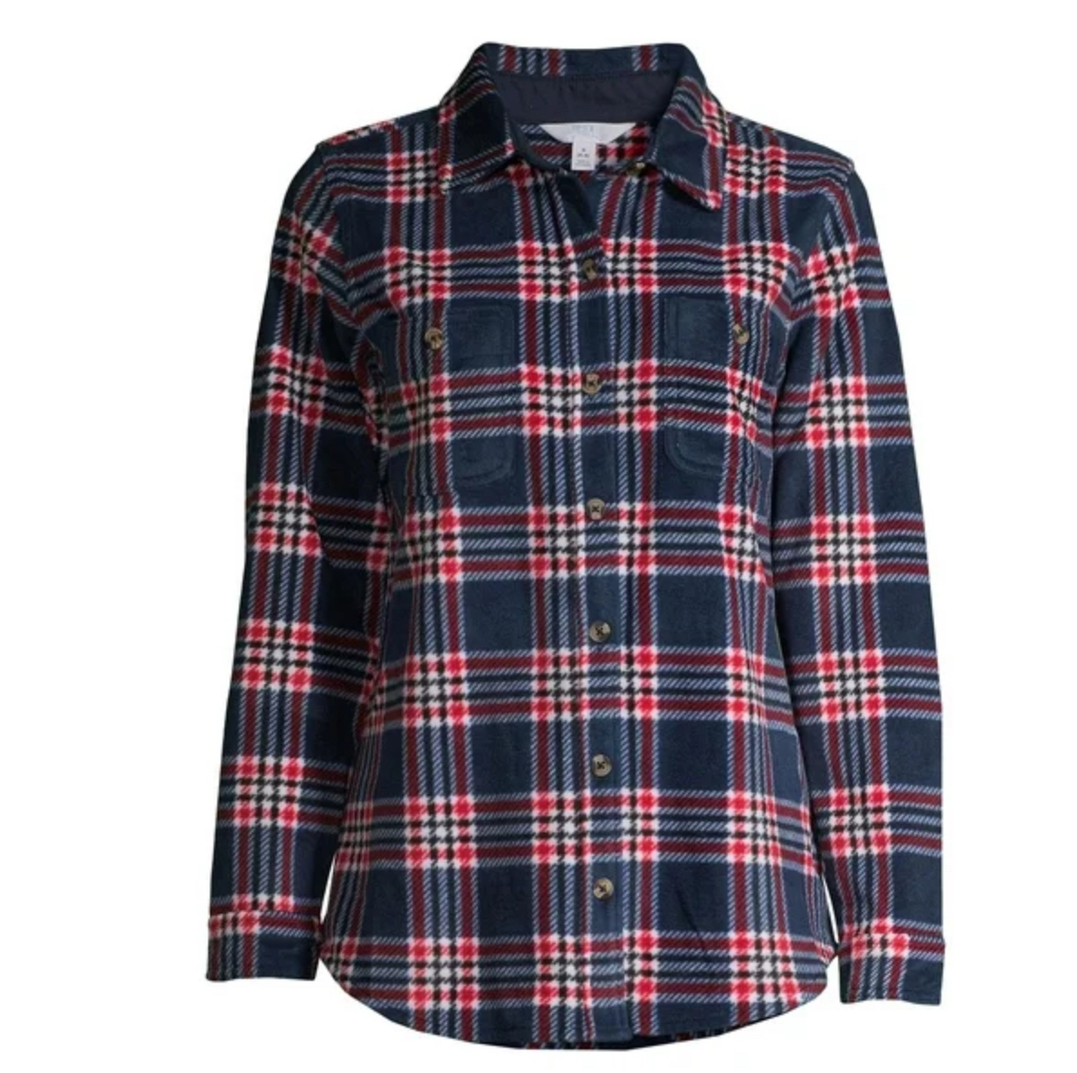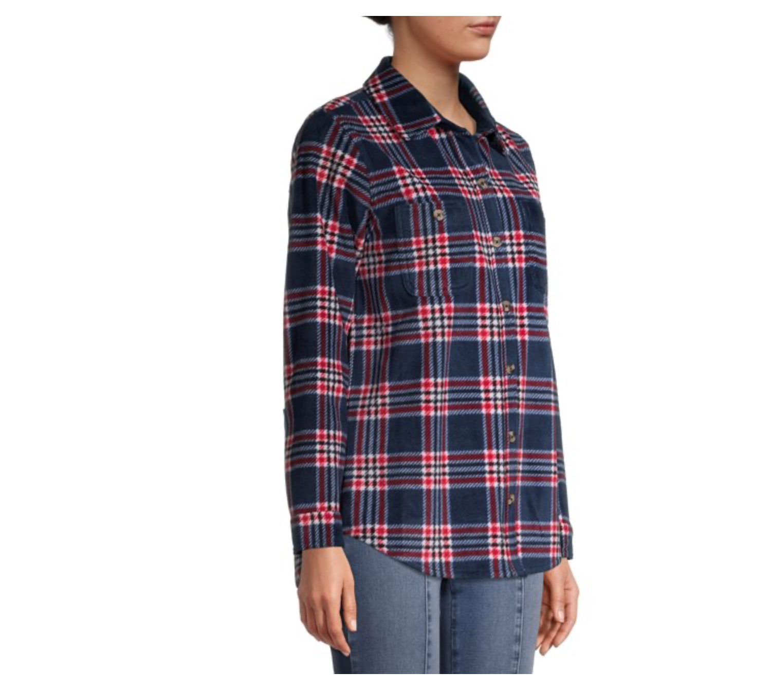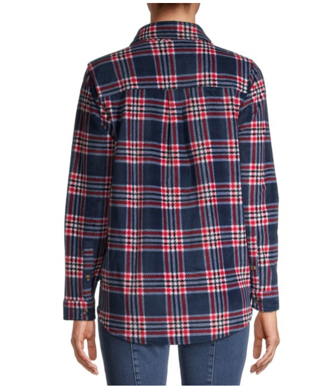 Classic and casual, Time and Tru’s Fleece Shirt Jacket is an easygoing layering must-have checked to perfection. This cozy button front top is more than a shirt, but lighter than a coat - the perfect trans-seasonal piece to layer throughout the chilly weather. Style it up with a basic turtleneck and your favorite coat for the perfect cool-weather look. It will pair well with your jeans and favorite knee-high boots.