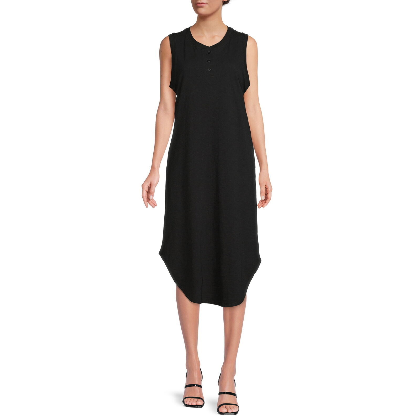 - Time and Tru Women's Sleeveless Curve Hem Henley Midi Dress Size XL (16-18 Black