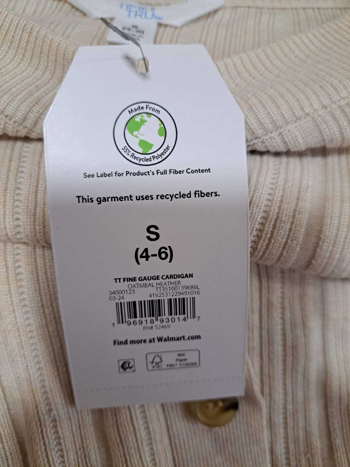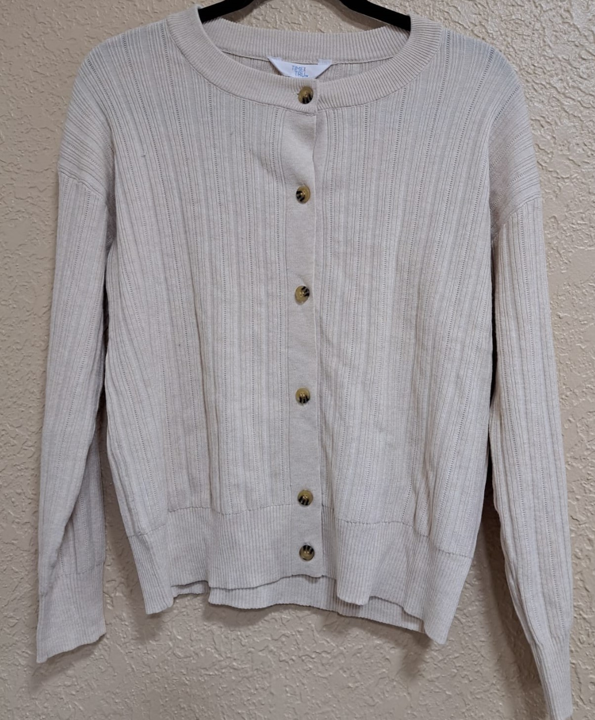 - Time and Tru Womens Fine Gauge Cardigan Oatmeal Heather S (4-6)