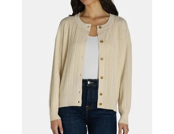 Time and Tru Womens Fine Gauge Cardigan Oatmeal Heather S (4-6)