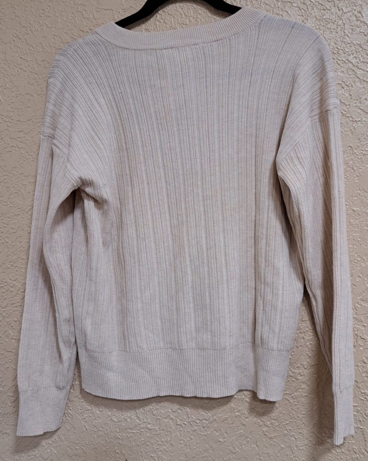 The Time and Tru Women’s Fine Gauge Cardigan in Oatmeal Heather, size Small (4–6), is a lightweight, versatile layer perfect for year-round wear. Crafted from soft, fine-gauge knit fabric, it offers a smooth, breathable feel that's ideal for layering over tees, blouses, or dresses. The classic open-front design creates a clean silhouette, while ribbed cuffs and hem add subtle structure. Its neutral oatmeal color makes it easy to pair with anything in your wardrobe — from office attire to casual weekend looks. Designed for comfort and style, this women’s cardigan is machine washable and great for transitional weather or cool indoor settings. Whether you're dressing up or keeping it simple, this staple sweater adds polish to any outfit