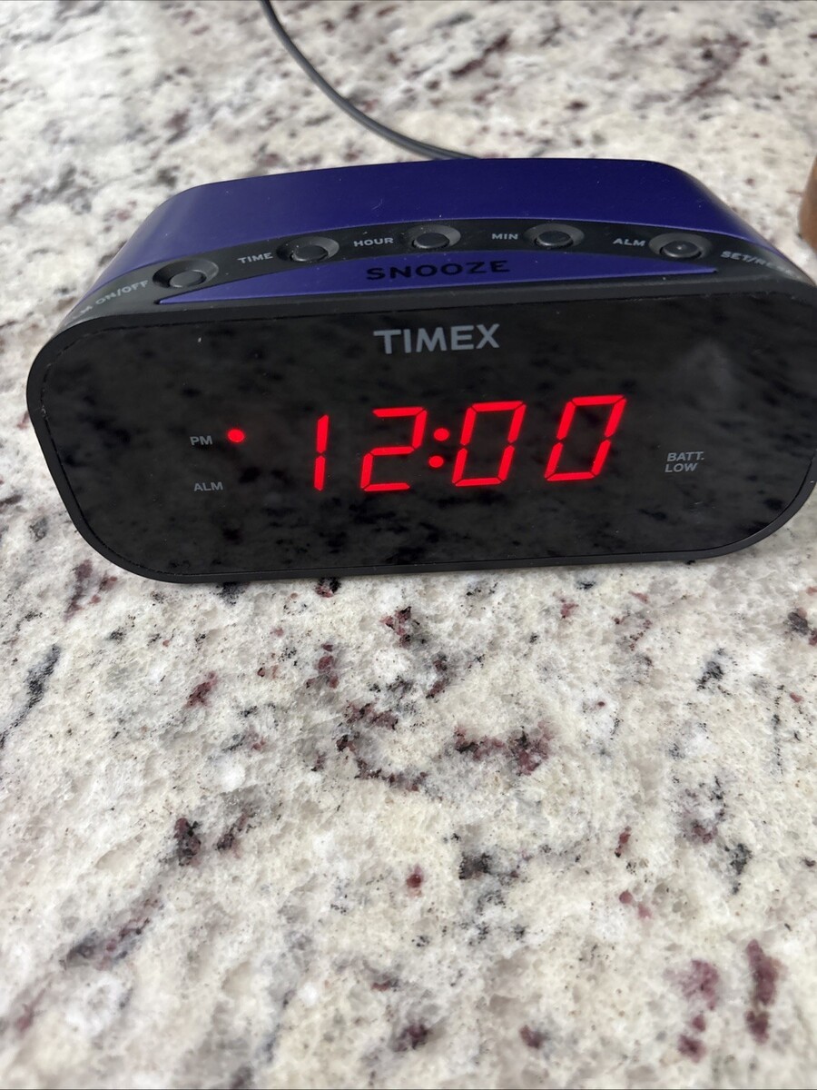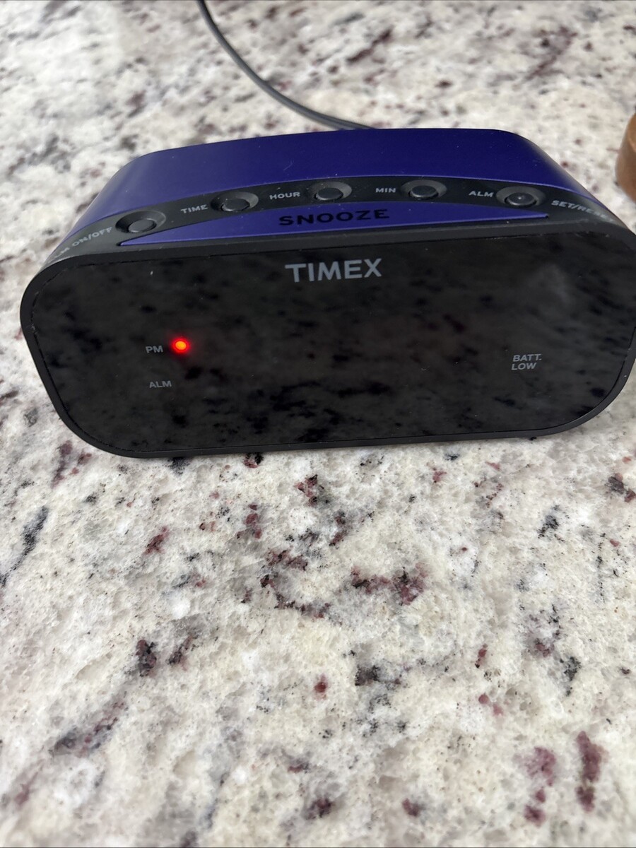 - Timex T121 Dual Alarm Clock Purple 7" Large Display Battery Backup System