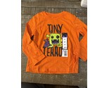 The Tiny Terror Halloween Shirt in size 2T is a cute and festive T-shirt designed for baby and toddler boys and girls. The shirt features the brand's logo and showcases a Halloween theme, making it perfect for the Halloween season. The vibrant orange color adds a fun and spooky touch to the outfit, while the high-quality material ensures comfort and durability for your little one. Dress up your child in this adorable Halloween shirt for a fun and stylish look.