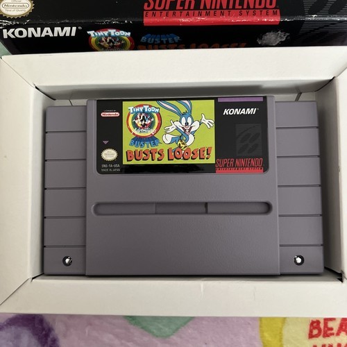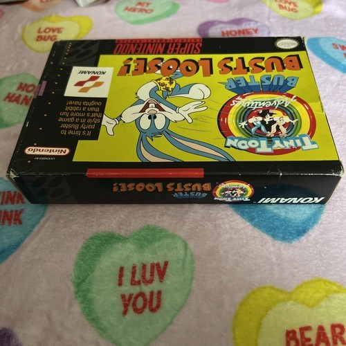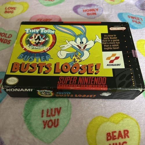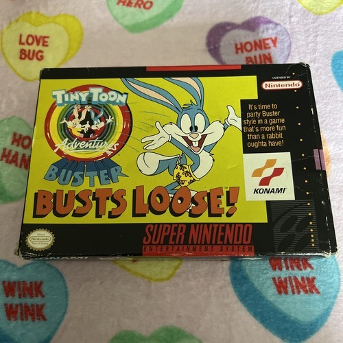 - Tiny Toons Buster Busts Loose SNES Super Nintendo Game Konami w/ BOX