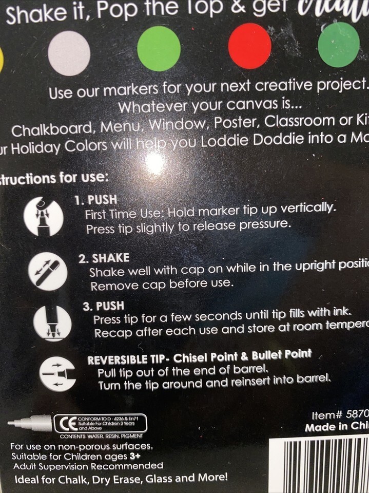 Loddie Doddie 6ct 6mm Reversible Tip quality Chalk Markers.