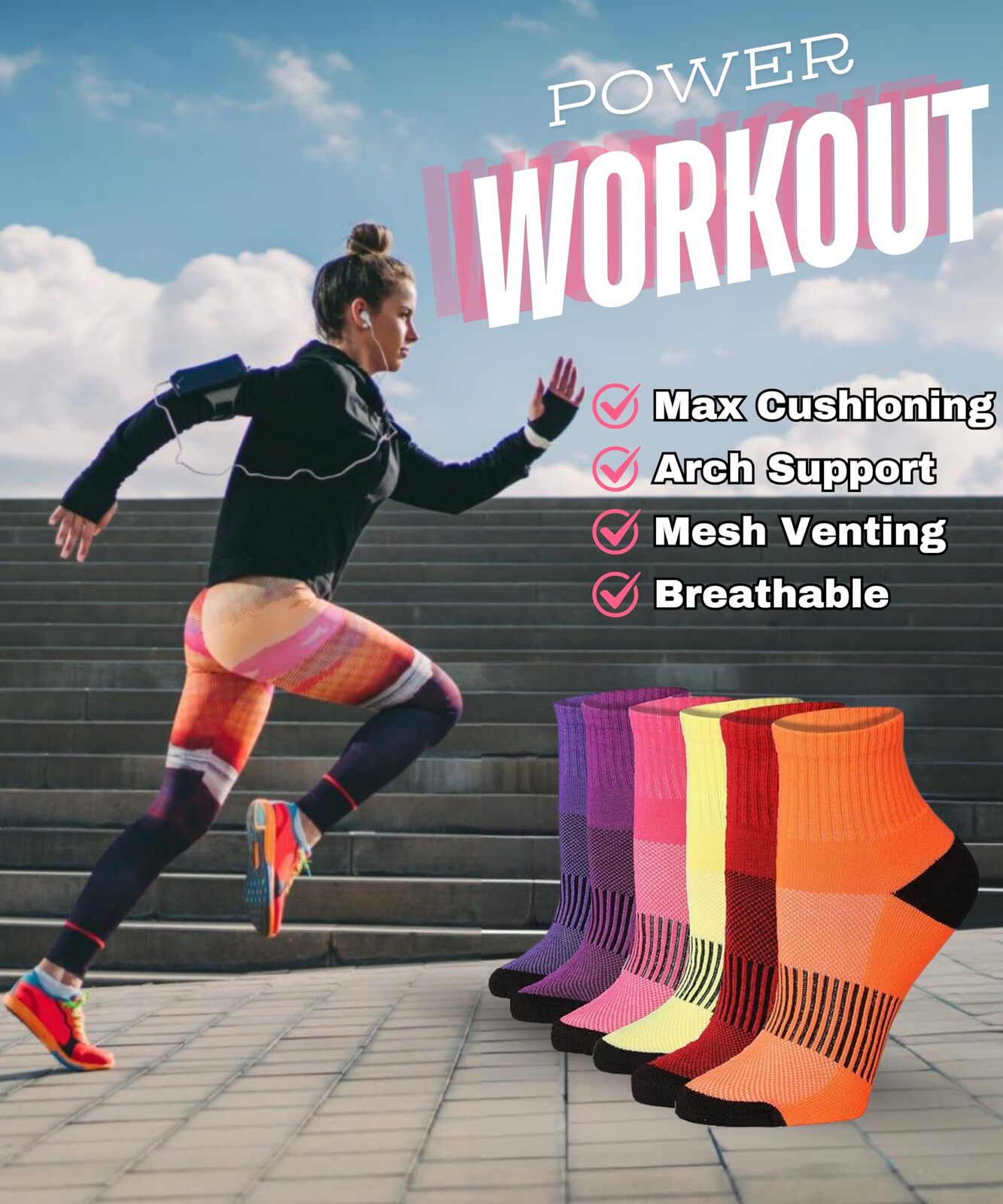 Tipi Toe Women's 6-Pairs Running & Athletic Sports Performance White Color-Sole
