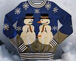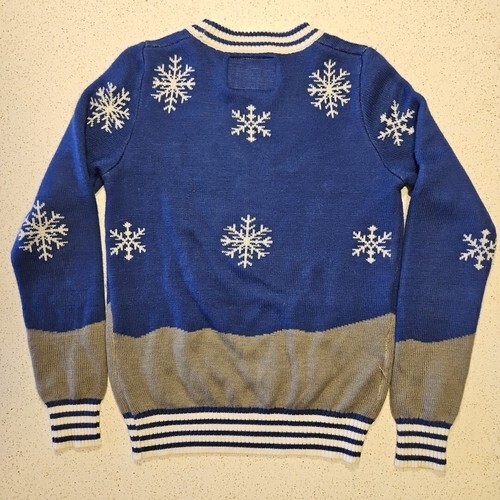 - Tipsy Elves Christmas Sweater Mens S Nose Carrot Thief Snowmen Blue Long Sleeve