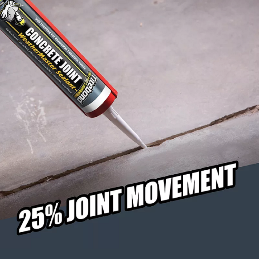 Titebond WeatherMaster Concrete Joint Sealant is a one-component, self-leveling, advanced polymer formula. This premium grade, high performance sealant is designed to flow easily and smoothly into concrete cracks and joints, providing a permanent, durable seal.