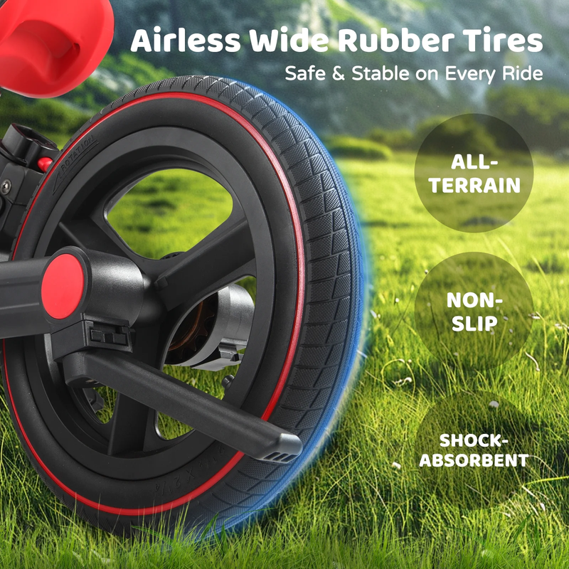 Durable Stable: Durable steel frame ensures the stability and safety of the kids bike. The high-quality all-terrain inflatable-free rubber wheels provide shock absorption, which is suitable for riding on various ground surfaces. In addition, the handbrake is designed for emergency braking or to prevent skidding, ensuring the safety of children