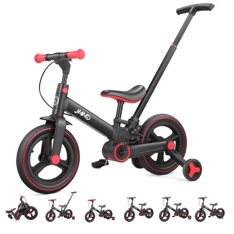 The JMMD 6-in-1 Kids Bike, for 18-60 month olds, transforms through 6 stages (push, training wheels, balance, pedal, kickstand, folded) to grow with toddlers, no repeated buys needed. Tool-free to set up, one-touch foldable for storage, it has a sturdy steel frame, all-terrain EVA wheels, a handbrake for safety, and adjustable seat/handlebar (with 2 seat posts). Boosting skills and coordination, it?s a great gift, backed by reliable customer support.