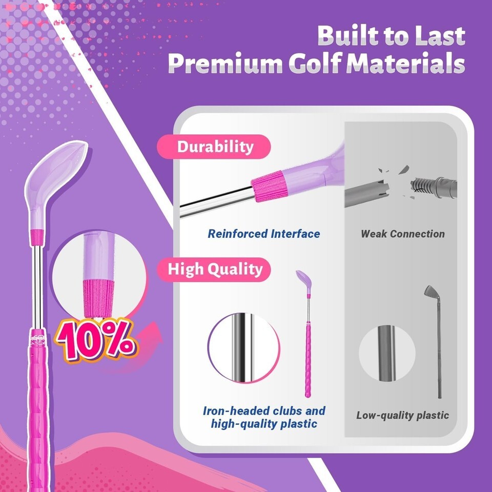 ?Adjustable Golf Club with 3 Heads?This toddler golf club set includes 3 interchangeable heads, perfect for left- or right-handed kids. The adjustable club length grows with children of different ages, making it a versatile kids golf toy set for boys and girls age 3-7.