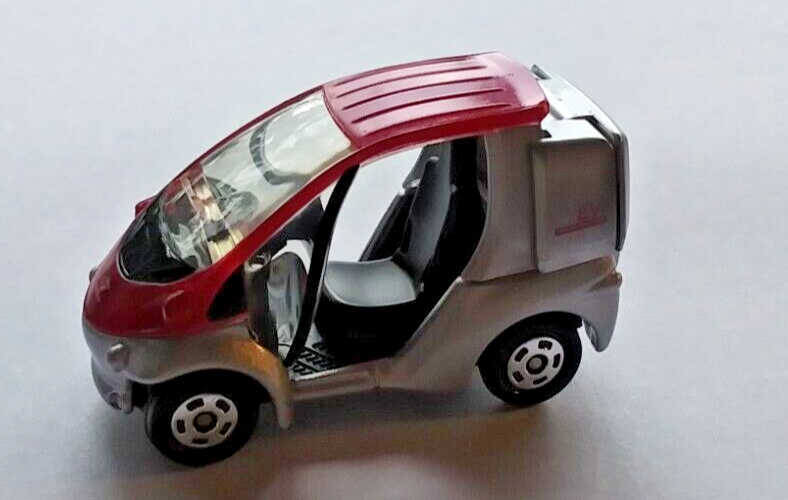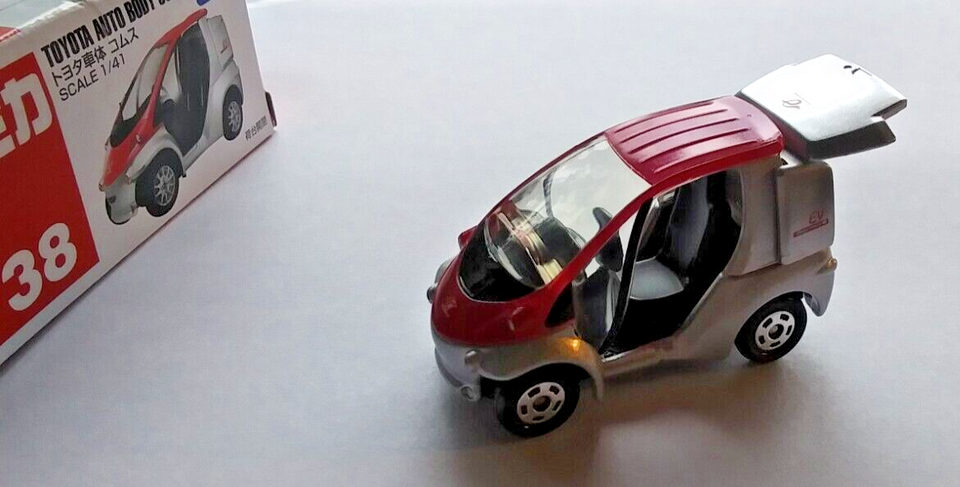 This is a new condition, just with an open box, Tomica Japanese Mini EV Car, a Toyota Auto Body Coms, Takara Tomy series, No. 38. It is 1/41 Scale, around the same size as most Matchbox or Hot Wheels cars, and it's a very unusual vehicle! It's well made as Tomy cars are known for, and is made of die cast metal with plastic parts, with really nice details. See my photos!