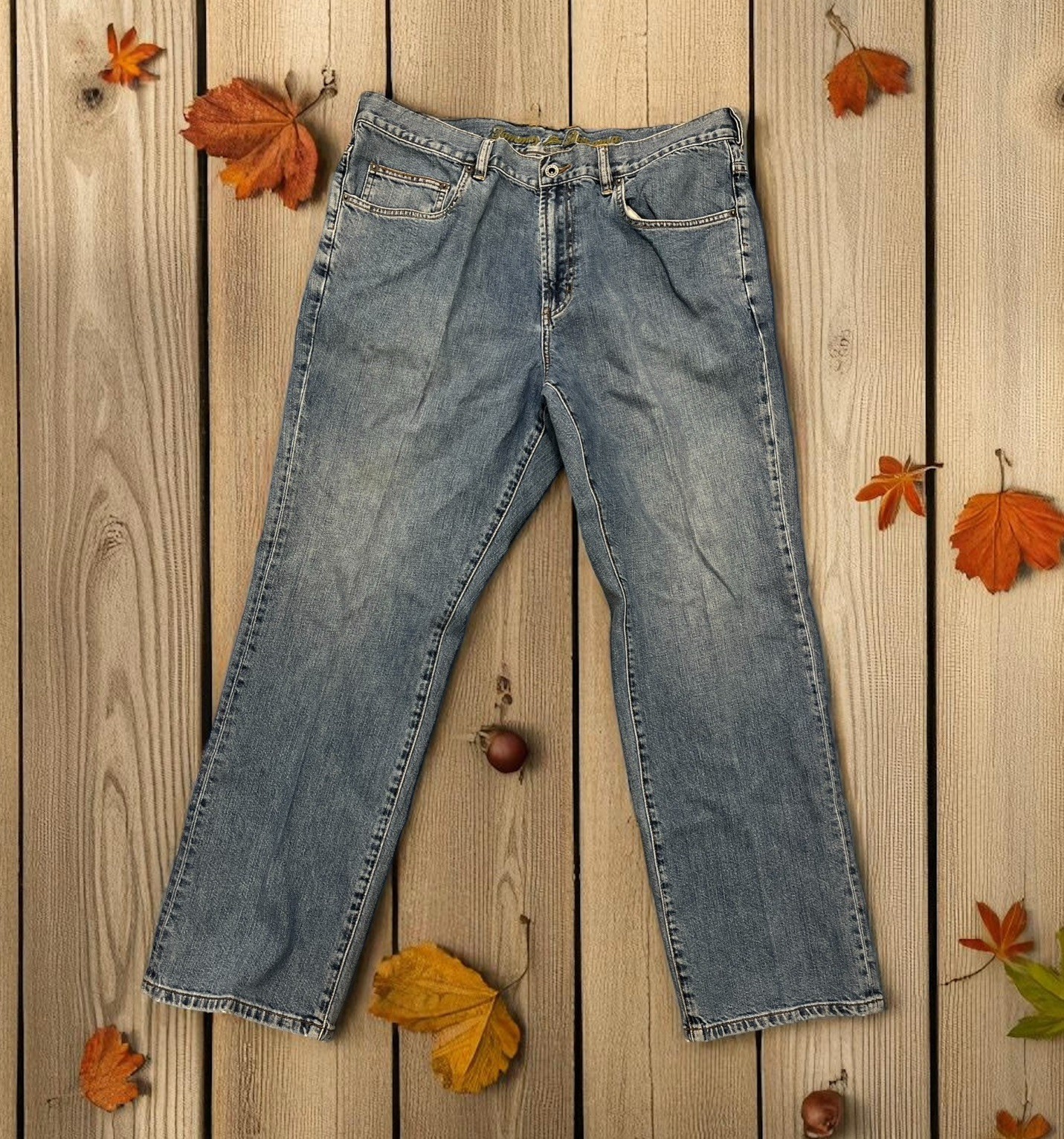 The Tommy Bahama 100% Cotton Denim Jeans in classic fit, offer a timeless and comfortable option for everyday wear. These straight-leg jeans in a medium wash blue are crafted from high-quality denim fabric, ensuring durability and a classic look. The regular fit make them a versatile choice for anyone's wardrobe, while the brand's reputation for quality adds a touch of sophistication to the wardrobe staple. Has a little bit of a frayed hem as shown in photos. Faint stain in the front. Please let me know if you have any questions!