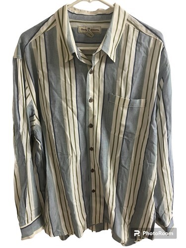 - Tommy Bahama Men's Size L Button Down Stripe Blue White Green Long Sleeve EUC