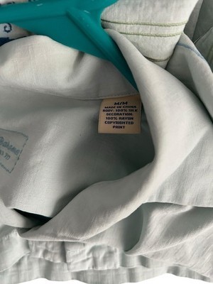 The Tommy Bahama Men's Shirt in light blue in size Medium is a stylish and classic choice for any casual occasion. Made from a luxurious blend of silk and rayon, this short sleeve button-up shirt features a graphic print paddle boards design, perfect for beach or nautical-themed outfits. The collared neckline and spread collar style add a touch of sophistication, while the lightweight and breathable fabric ensures comfort all year round. Complete with pockets and a regular fit, this Tommy Bahama shirt is a versatile addition to any man's wardrobe.